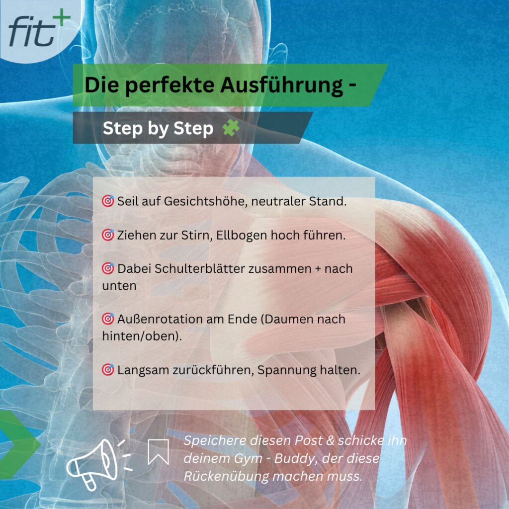 💡 Der Schlüssel: Ellbogen hoch, Zug zur Stirn und am Ende kurz halten.